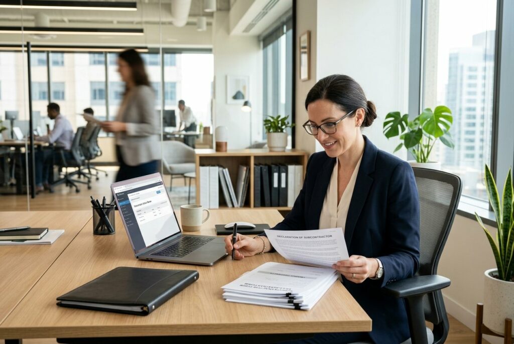 Déclarer un sous-traitant dès la candidature permet d’assurer la conformité administrative de l’offre, d’indiquer les prestations externalisées et d’activer, le cas échéant, le paiement direct via le formulaire DC4. Cela évite les retards d’acceptation après attribution et sécurise la relation contractuelle entre le soumissionnaire, le sous-traitant et l’acheteur public.